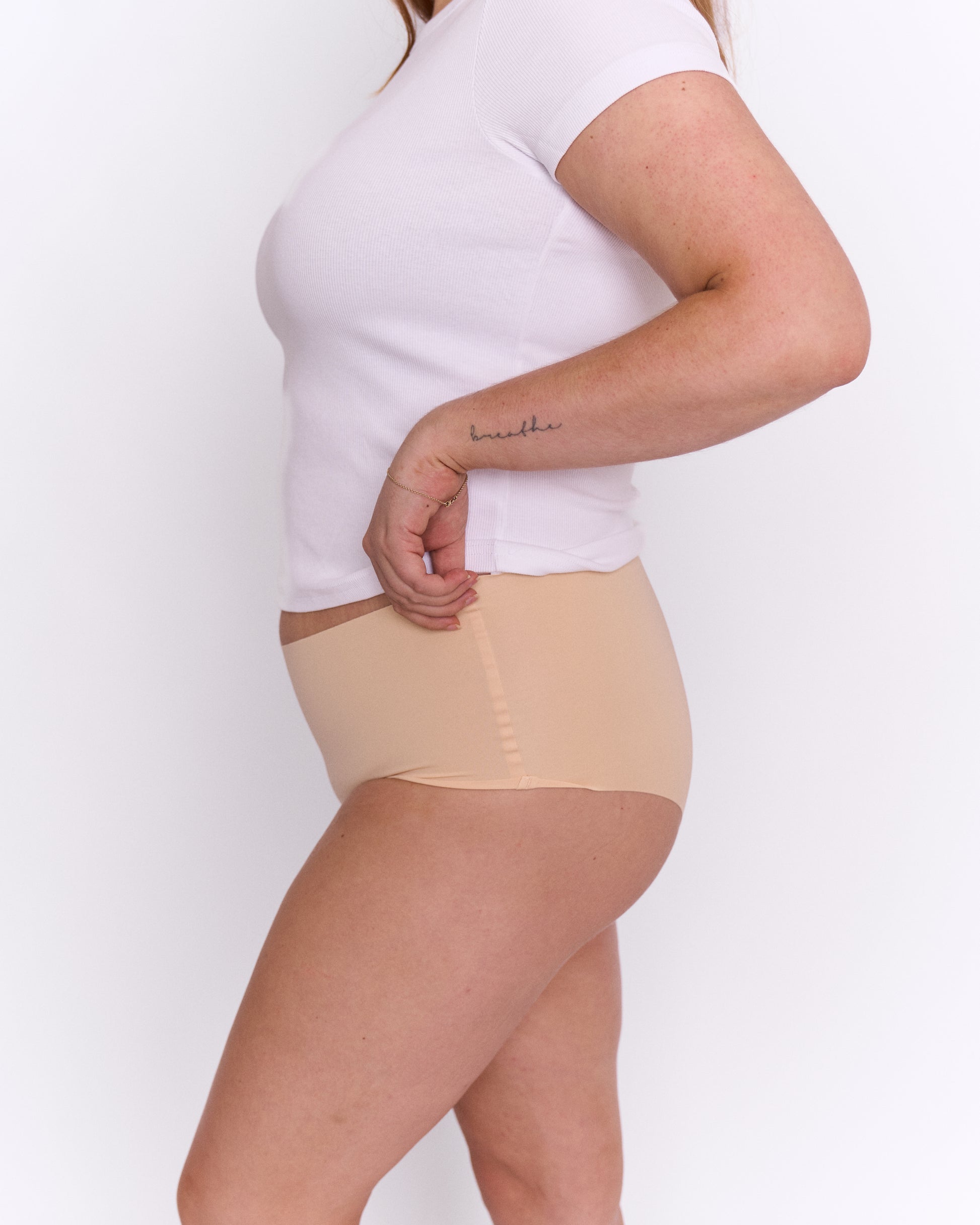 The game-changing High Waist Bikini offers peace of mind, designed to conceal a camel-toe. Our innovative design has been crafted with discreet padding technology which provides a smooth and flattering fit. The premium fabric is absorbent, offering moisture control with a cotton gusset to ensure maximum comfort and breathability. The High Waist Bikini is a seamless fit, incredibly smooth and soft to touch.